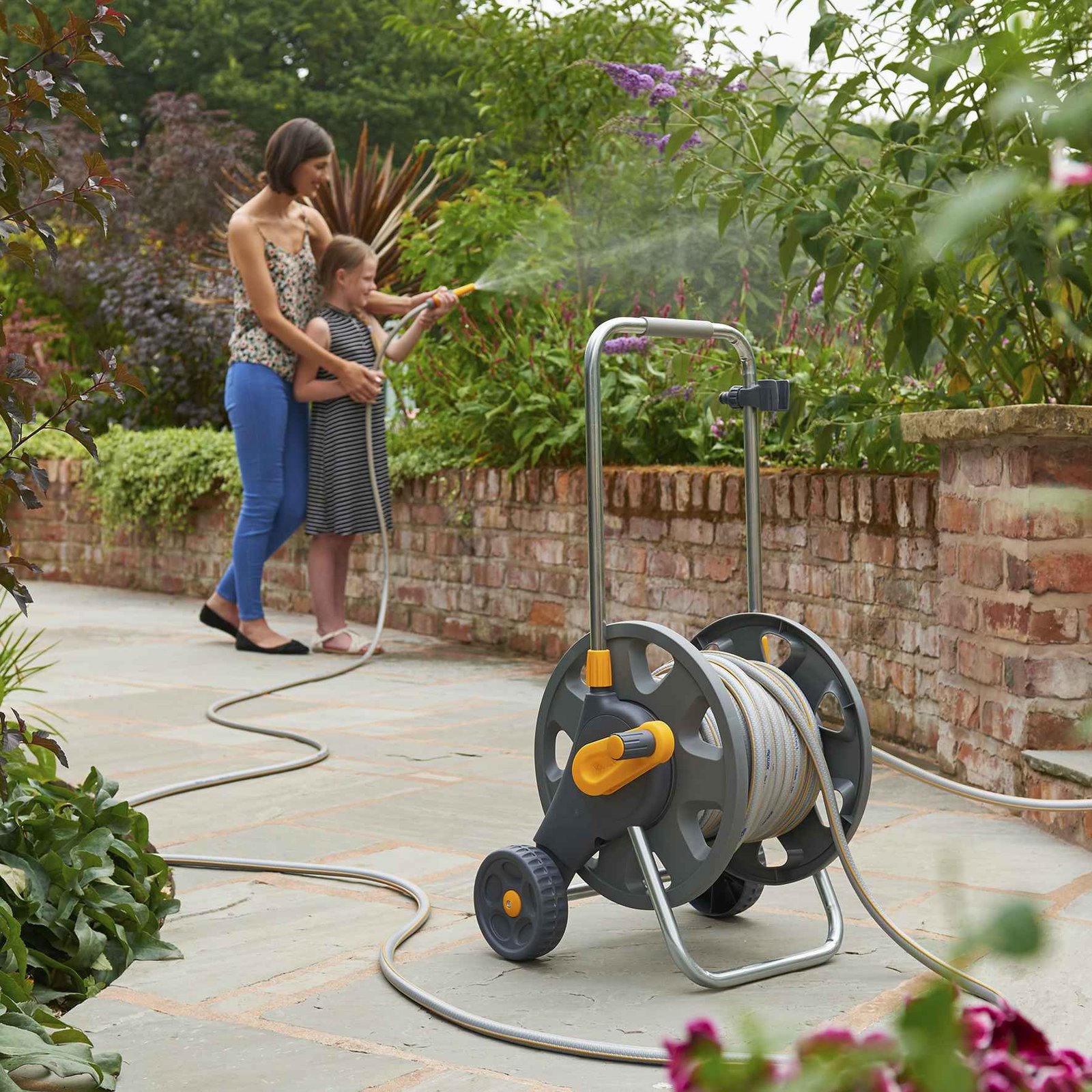 Hozelock 2434H, 30 m hortumlu ve 60 m kapasiteli tekerlekli hortum araba setidir. Büyük bahçelerde kolay ve pratik sulama için idealdir.